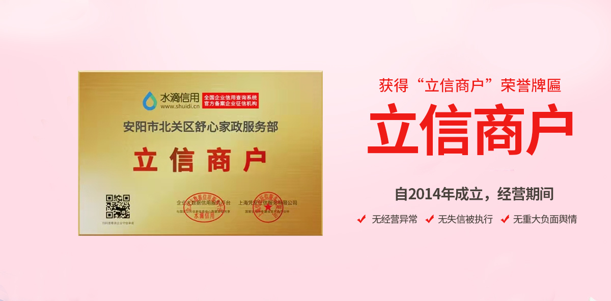 安陽市北關區(qū)舒心家政服務部立于2014年 是經工商管理部門注冊,具有母嬰護理服務機構 所有上崗人員均通過崗位技能培訓嚴格考核,持有身份證 健康證 母嬰護理師證并且在公安部門備案方可上崗。安陽市北關區(qū)舒心家政服務部針對產婦和新生兒的特殊護理要求制訂一整套的護理方法 在現代科學理念的指導下通過對產婦的飲<了解更多>
